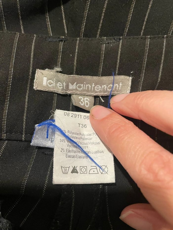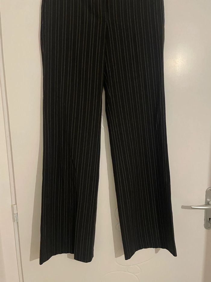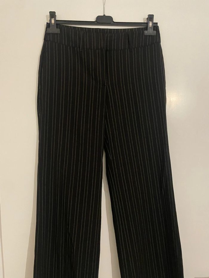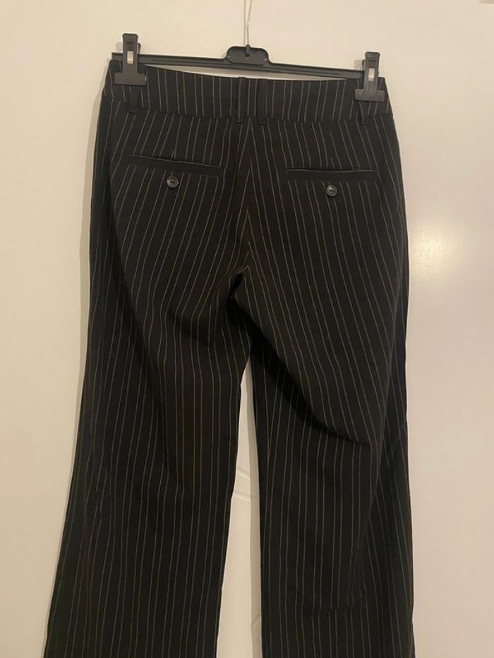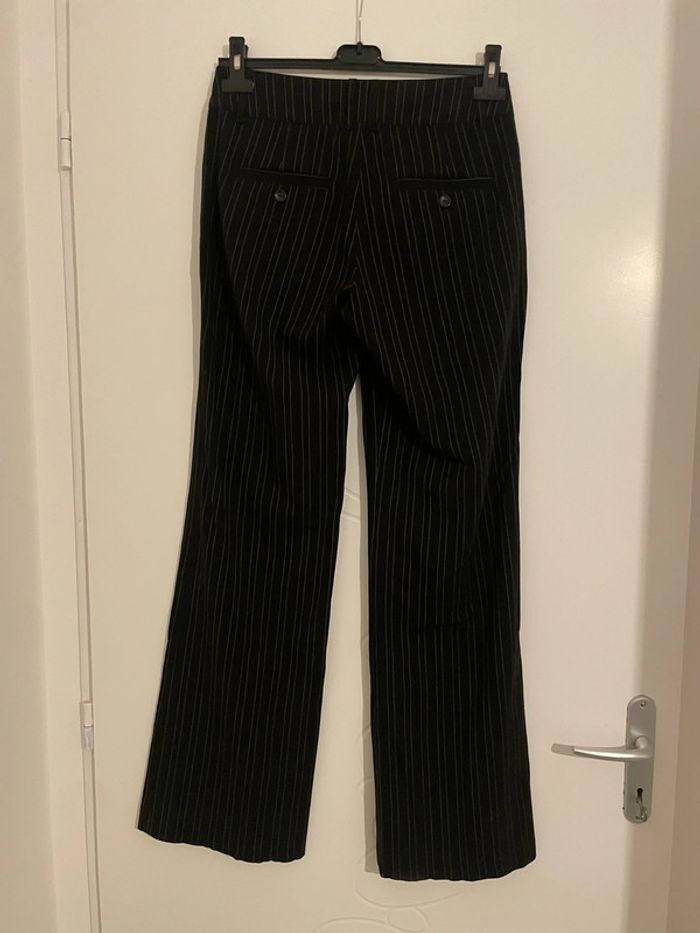 Pantalon habillé noir rayé blanc taille haute jambe large coupe flare Ici et Maintenant taille 36 - photo numéro 2