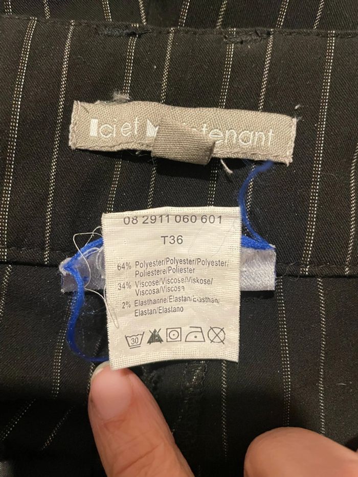 Pantalon habillé noir rayé blanc taille haute jambe large coupe flare Ici et Maintenant taille 36 - photo numéro 8