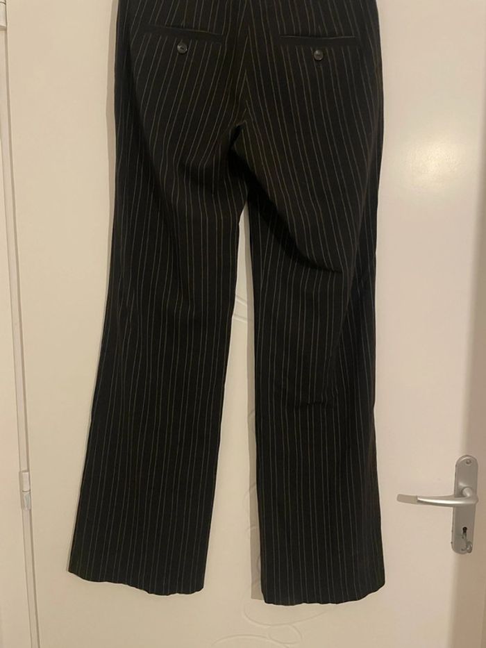 Pantalon habillé noir rayé blanc taille haute jambe large coupe flare Ici et Maintenant taille 36 - photo numéro 3