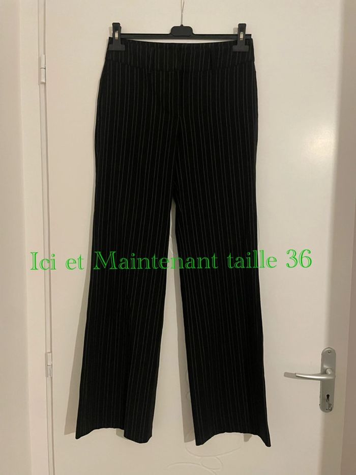 Pantalon habillé noir rayé blanc taille haute jambe large coupe flare Ici et Maintenant taille 36 - photo numéro 1