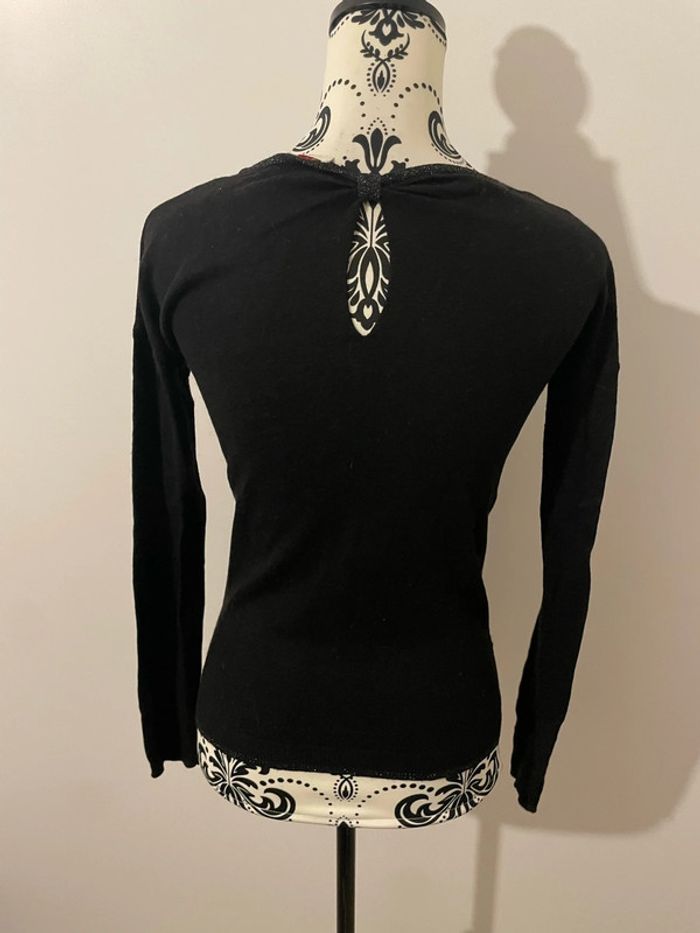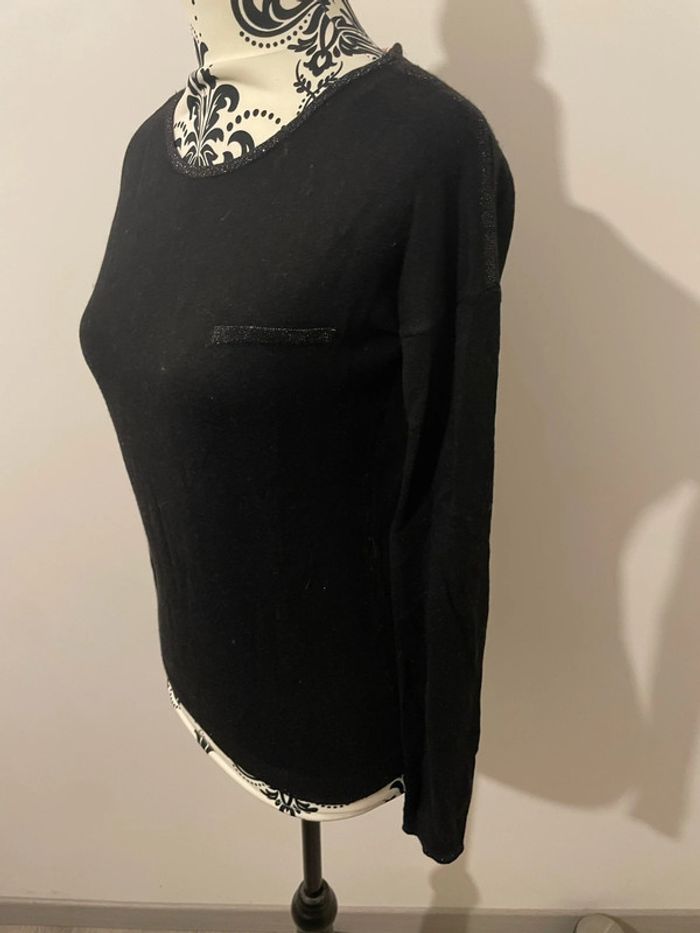 Pull noir à manches longues petite poche poitrine bordure argenté ouvert dos camaïeu taille 36 - photo numéro 2