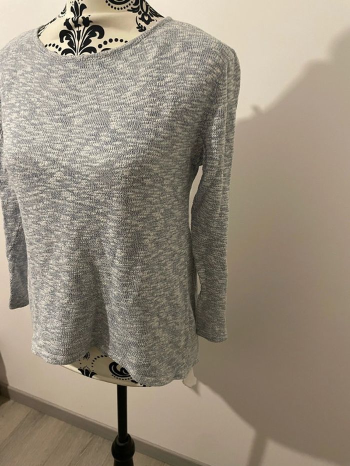 Pull à manches longues bleu chiné blanc style chemise en voile longue dos zamba taille 36