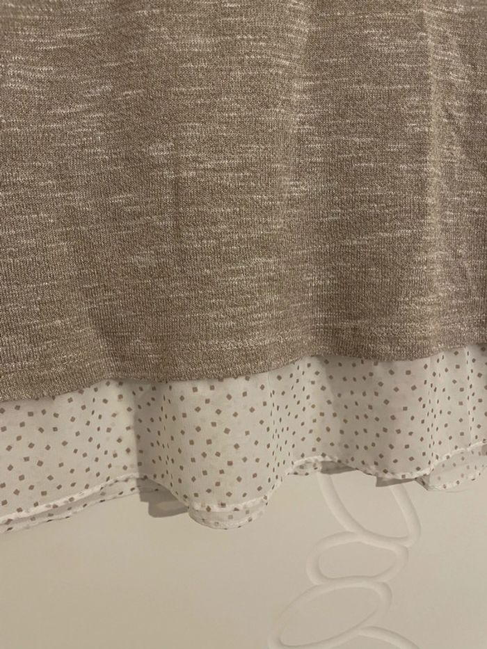 Pull à manches longues beige effet chemise blanc à pois beige camaïeu taille 36 - photo numéro 4
