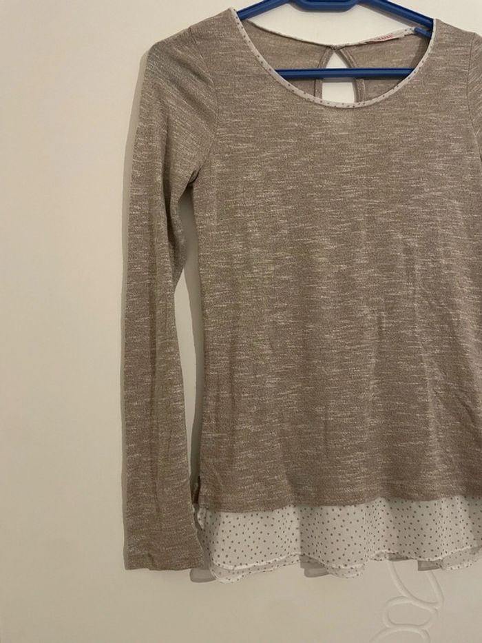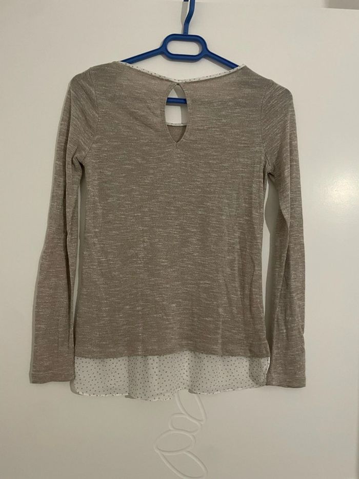 Pull à manches longues beige effet chemise blanc à pois beige camaïeu taille 36 - photo numéro 3