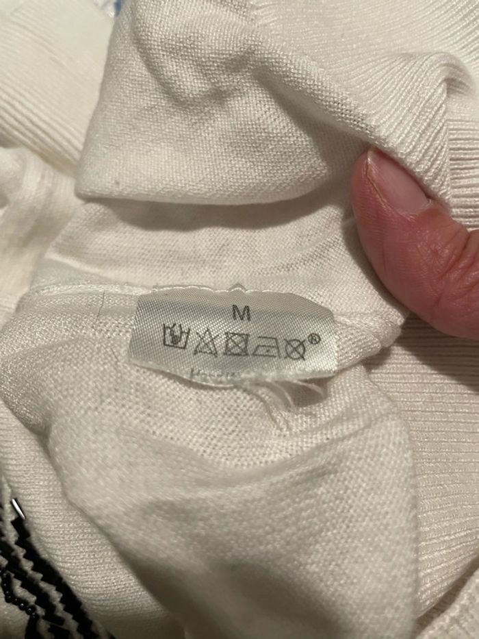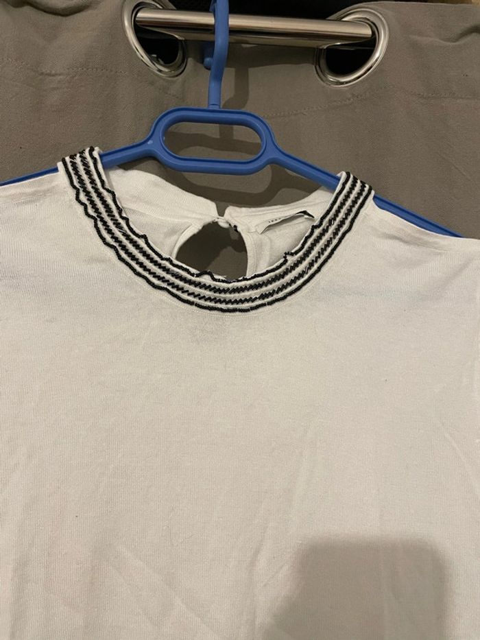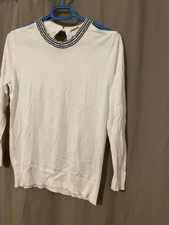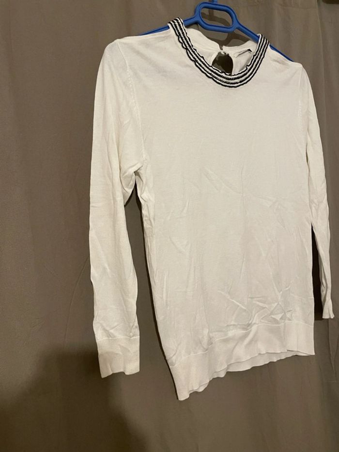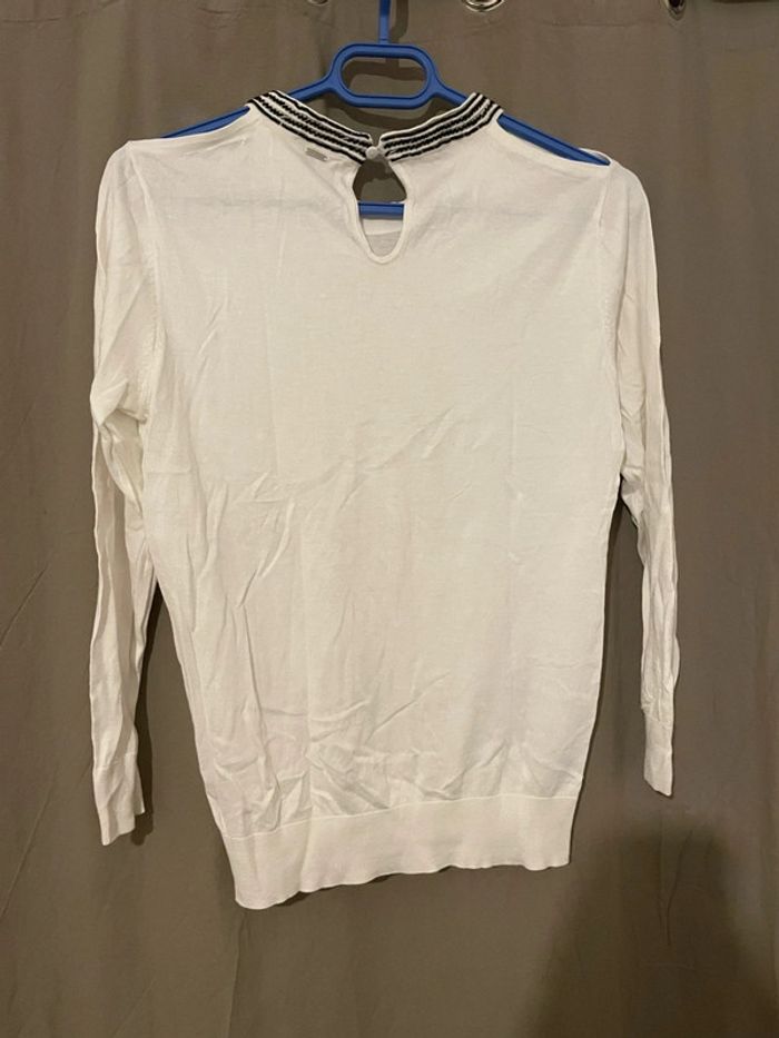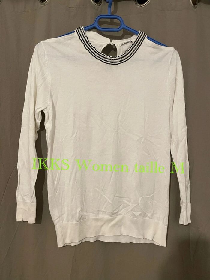 Bonjour je vends mon Pull à manches longues ouvert épaule blanc perle noir au col IKKS taille M Il est en très bon état #tiatia_femme_taille38
