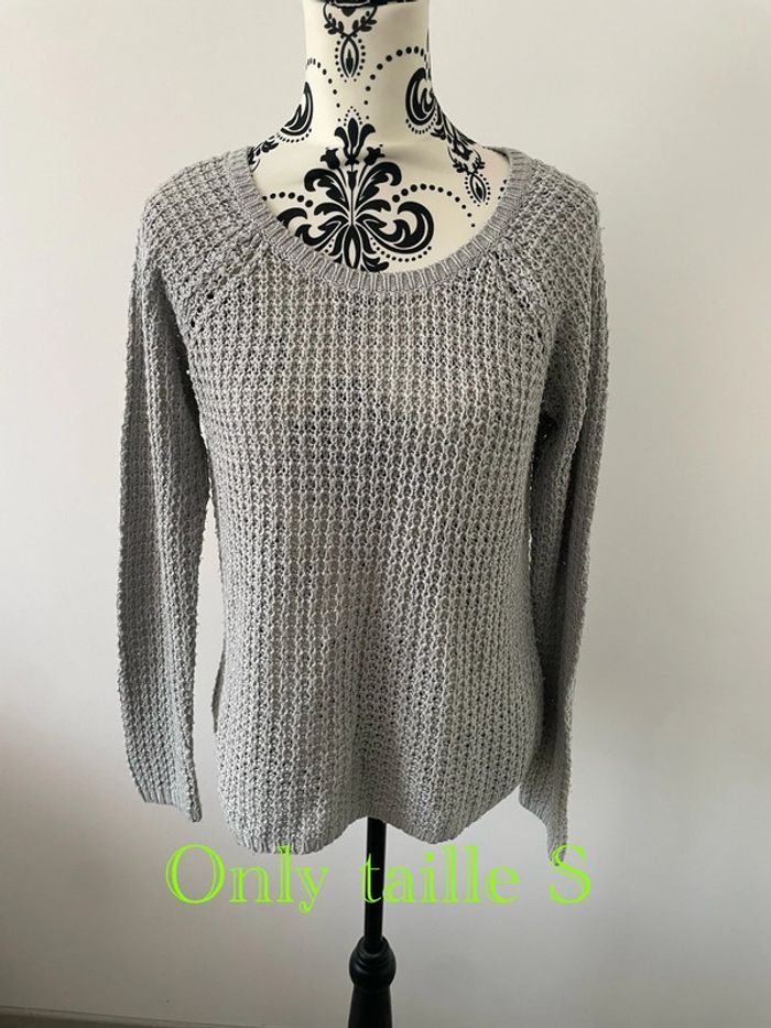 Bonjour je vends mon Pull gris à manches longues ajouré col rond only taille S Il est en très bon état très peu porté #tiatia_femme_taille36