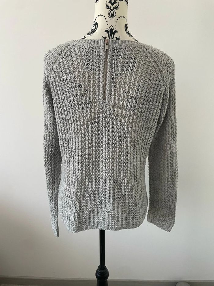Pull gris à manches longues ajouré col rond only taille S - photo numéro 6
