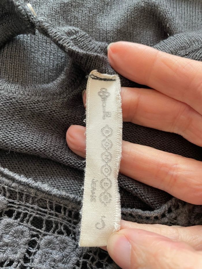 Pull à manches longues extensible gris col rond à dentelle bonobo taille S - photo numéro 7