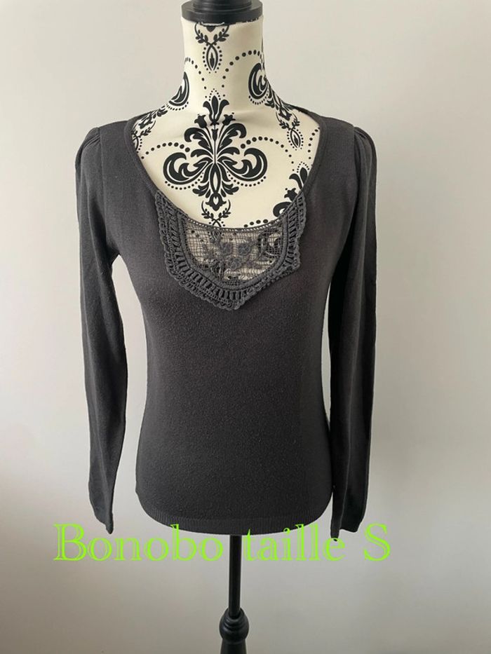 Pull à manches longues extensible gris col rond à dentelle bonobo taille S - photo numéro 1