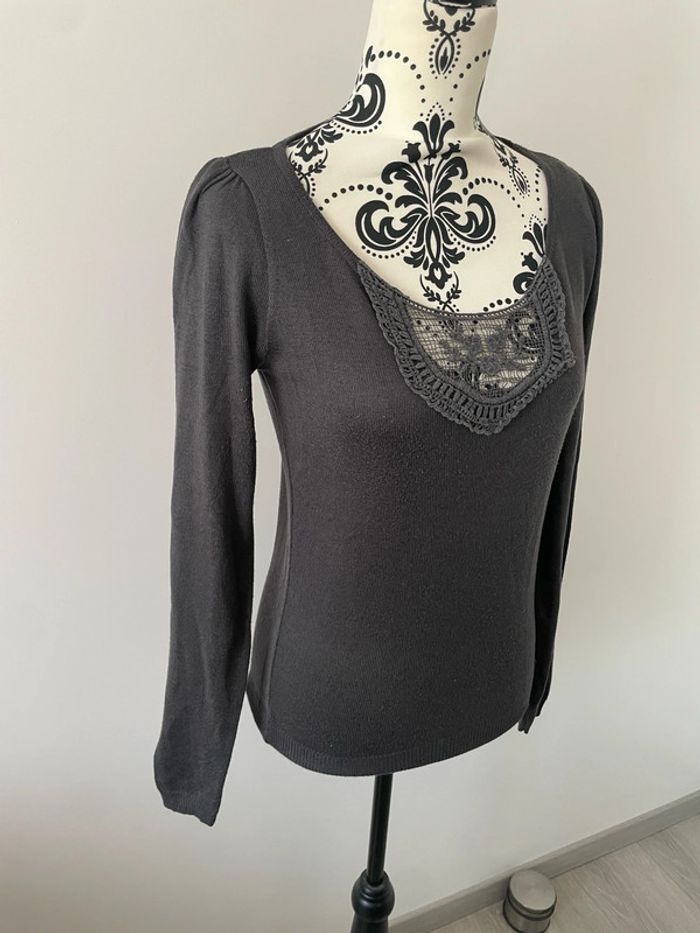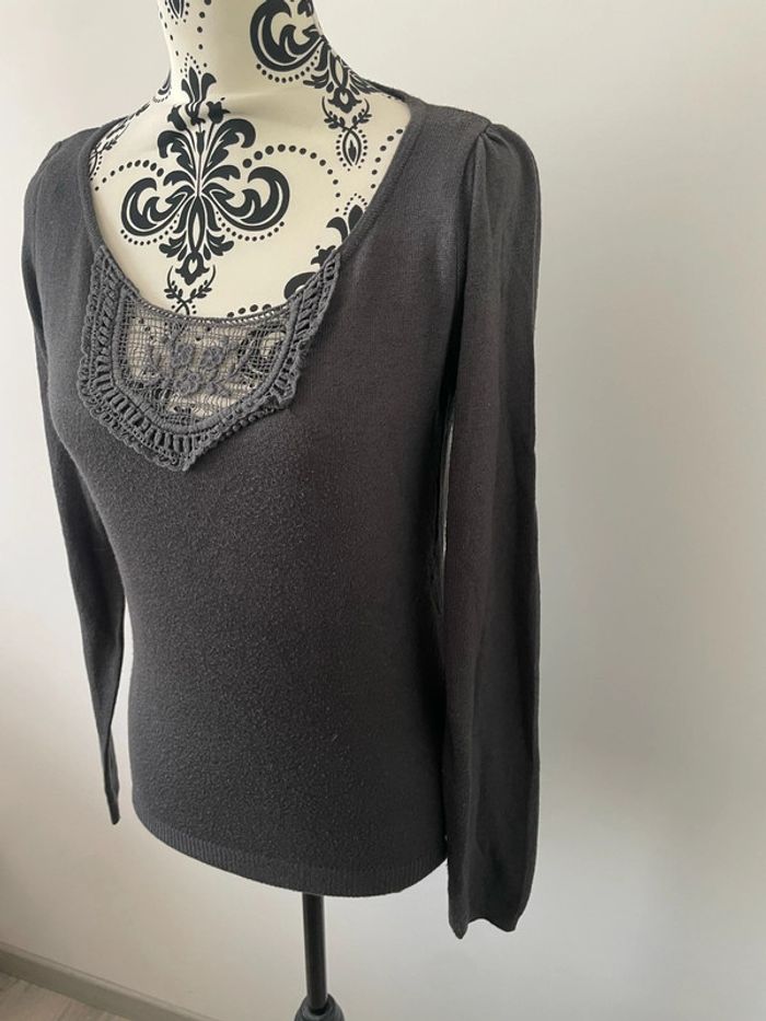 Pull à manches longues extensible gris col rond à dentelle bonobo taille S - photo numéro 2