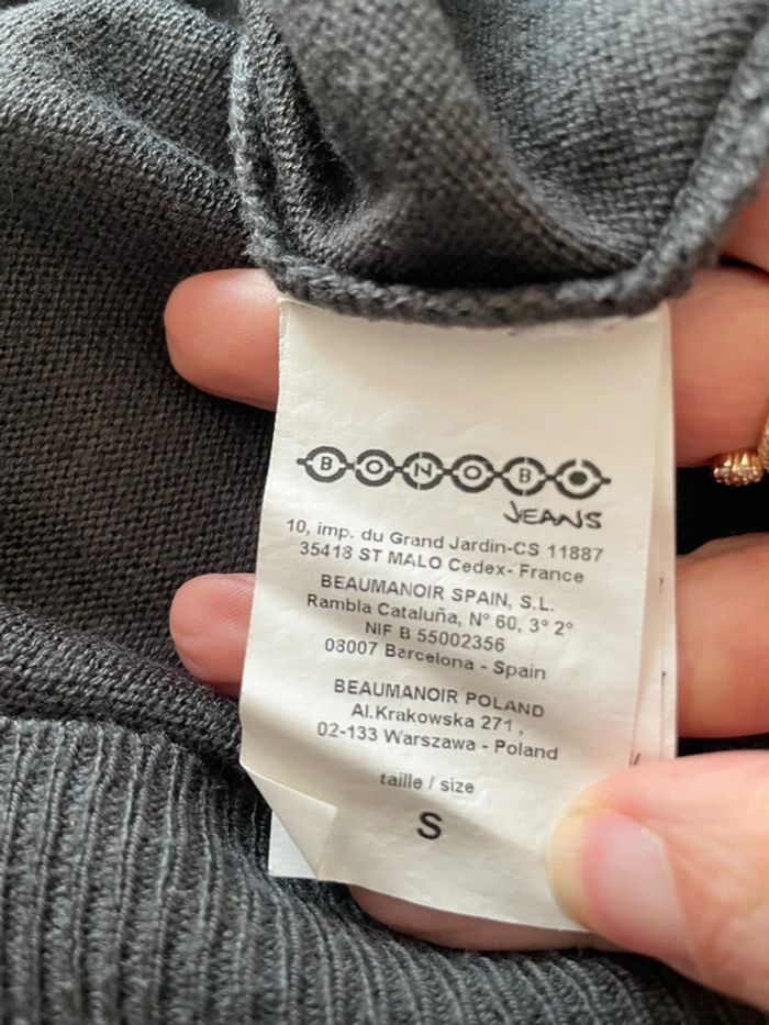 Bonjour je vends mon Pull à manches longues extensible gris col rond à dentelle bonobo taille S Il est en bon état juste quelques petites bouloche mais partira en les retirant #tiatia_femme_taille36