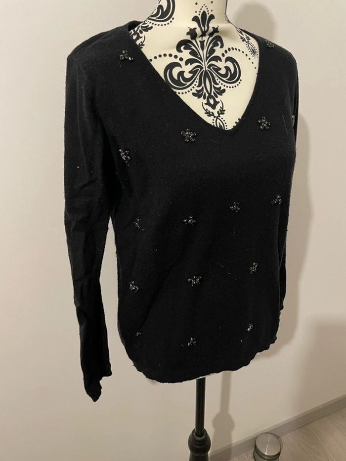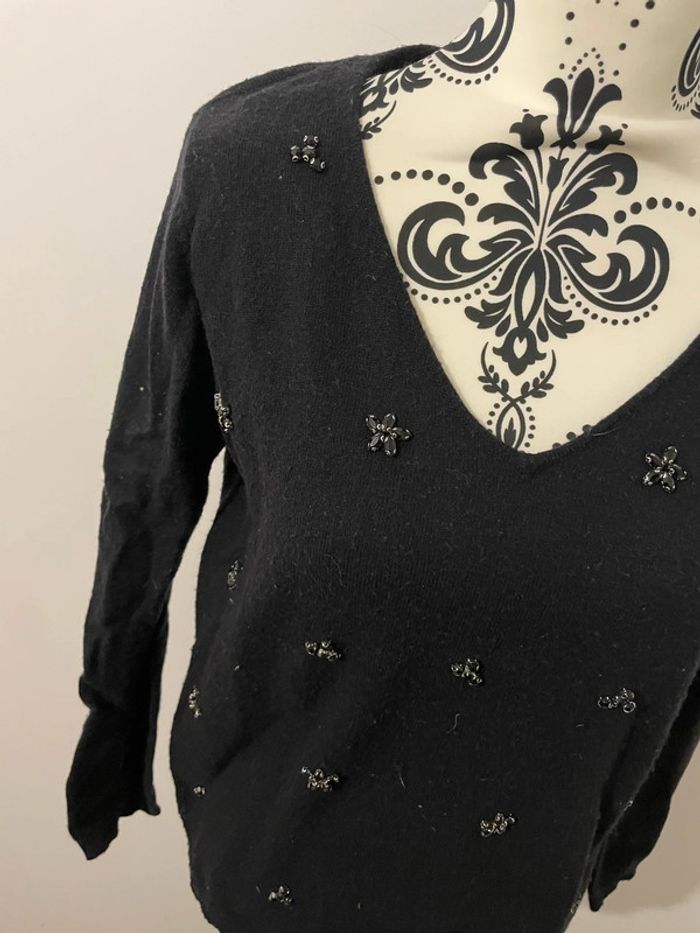 Pull tout doux noir à manches longues perlé strass devant col V Jacqueline Riu taille 38 - photo numéro 5