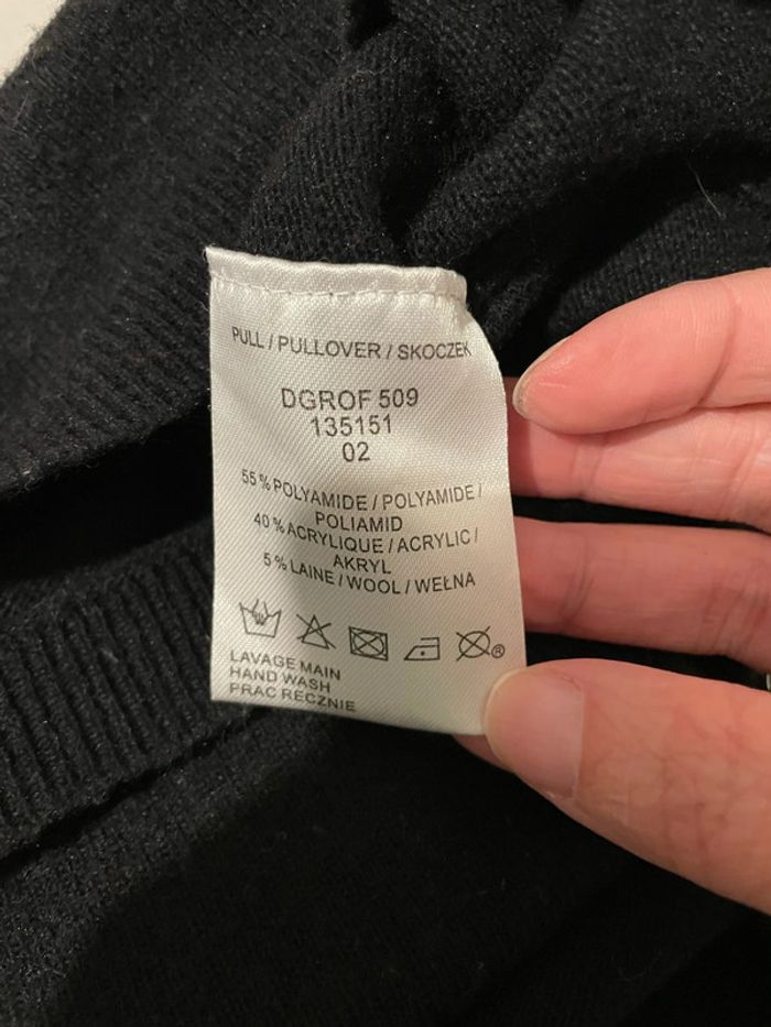 Pull tout doux noir à manches longues perlé strass devant col V Jacqueline Riu taille 38 - photo numéro 7
