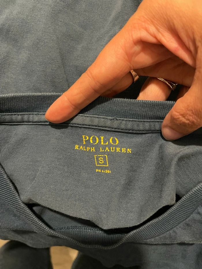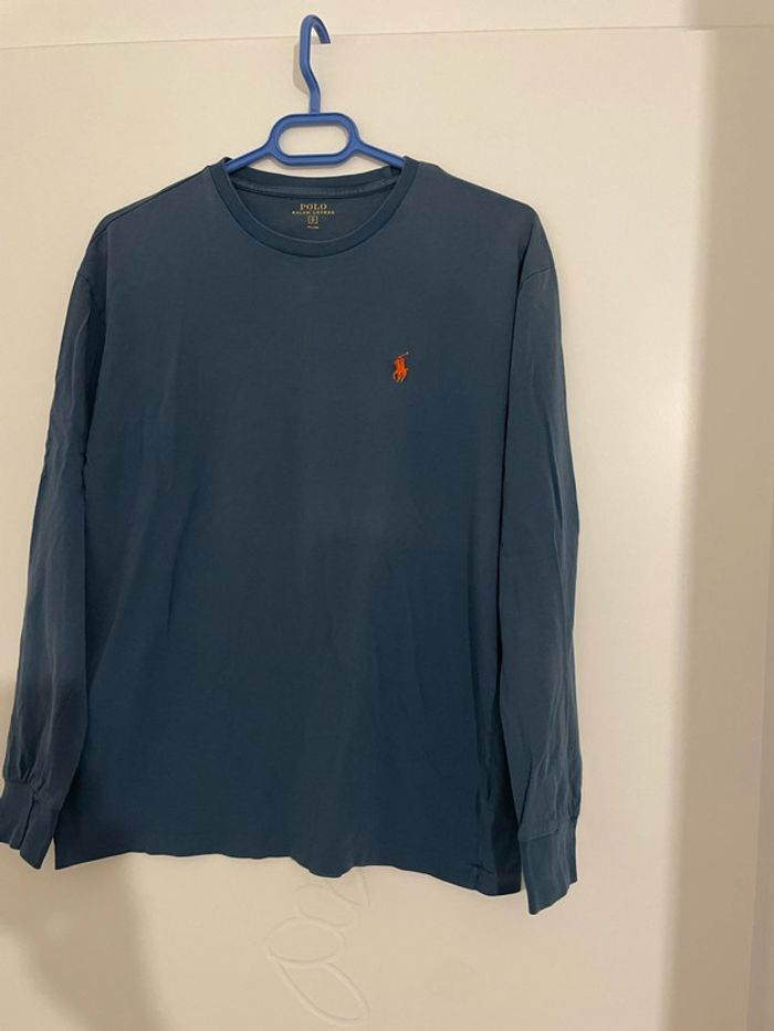 T-Shirt à manches longues col rond bleu canard Ralph Lauren taille S