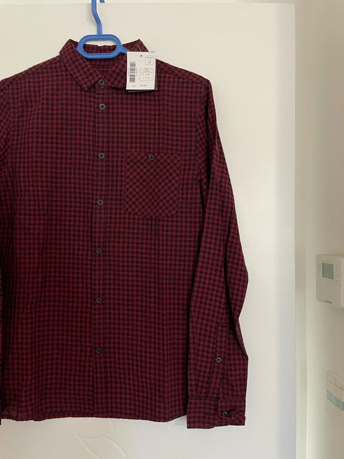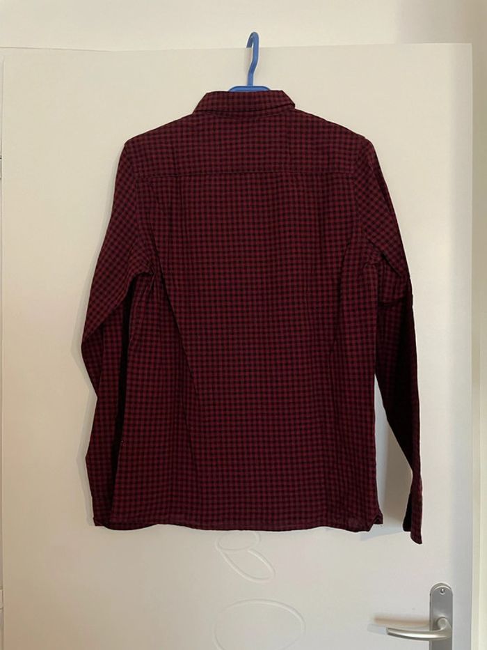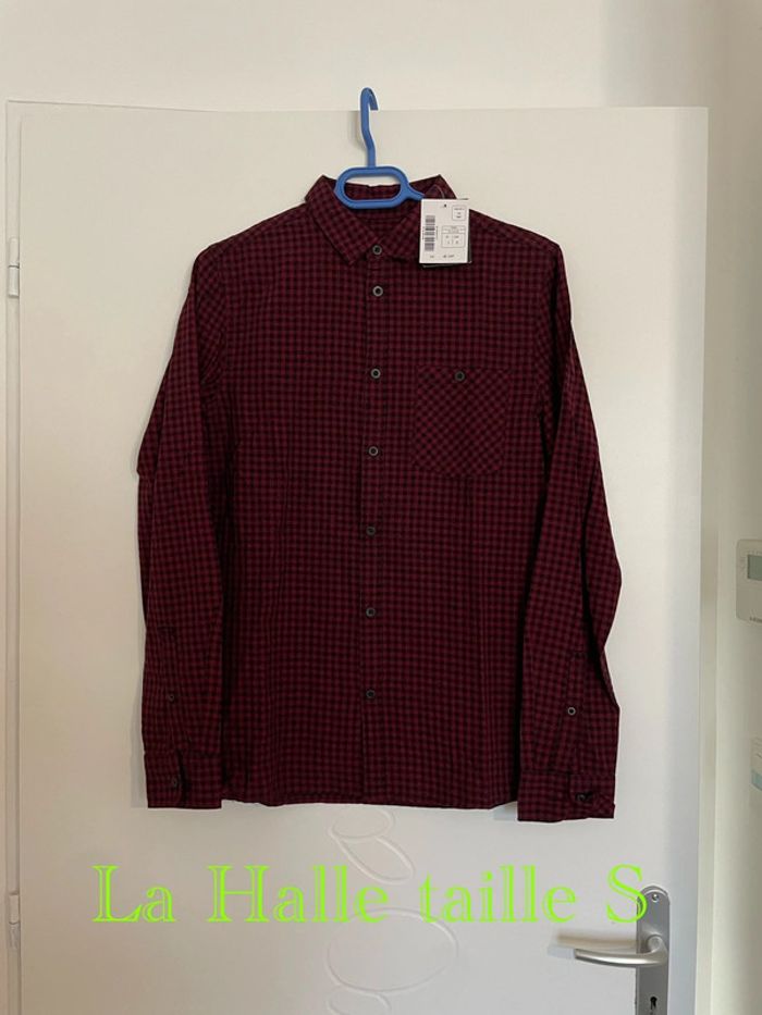Chemise à manches longues bordeaux à carreaux noir coupe ajusté neuf La Halle taille S