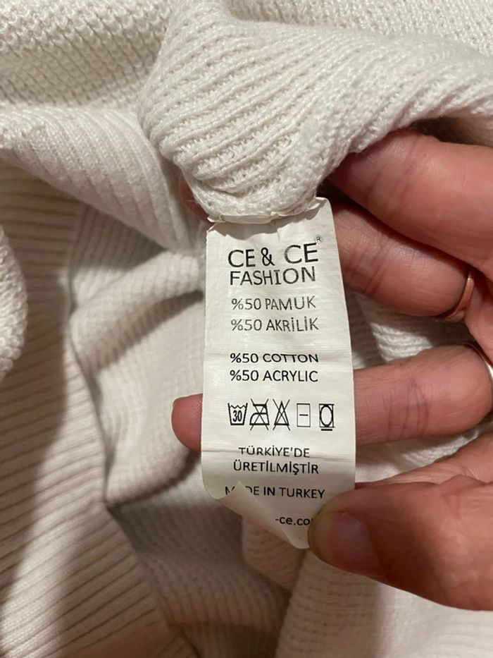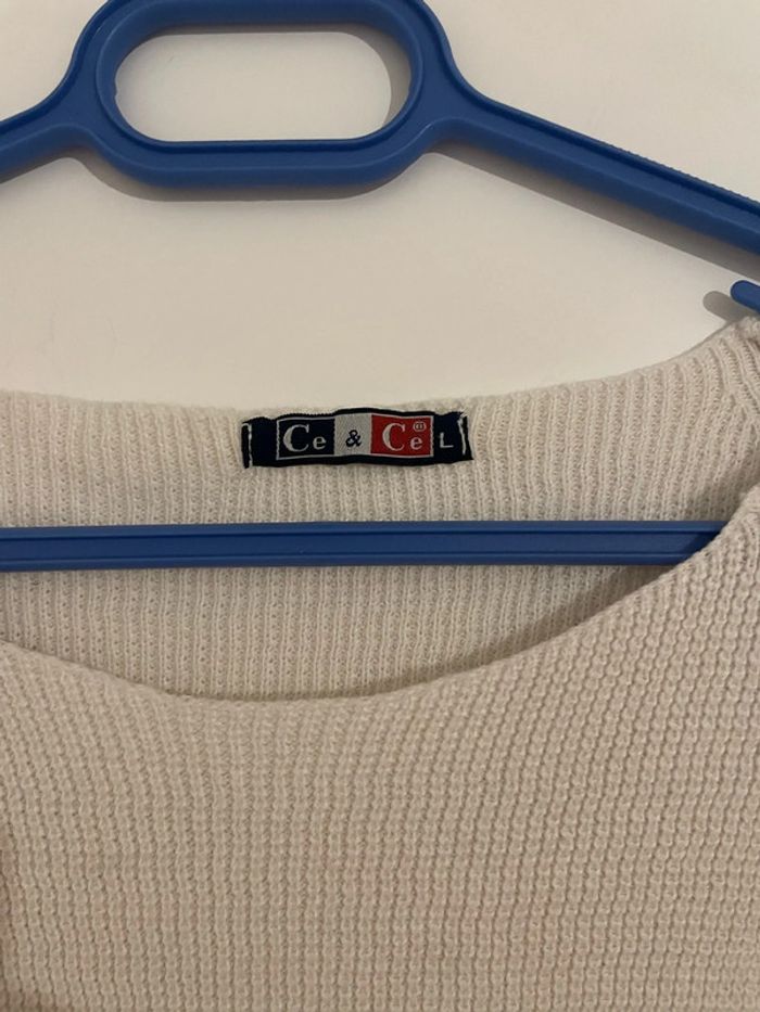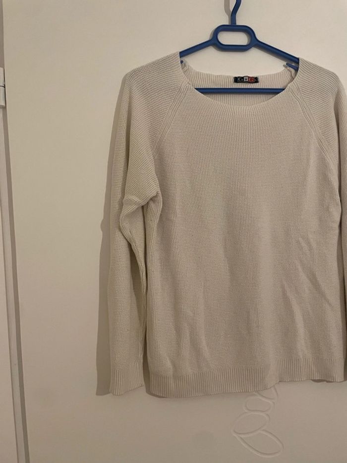 Bonjour je vends mon Pull à manches longues blanc uni col rond extensible Ce & Ce taille L Il est en excellent état très peu porté #tiatia_femme_taille40