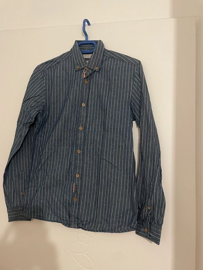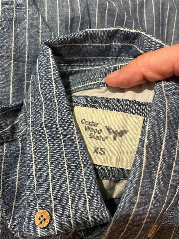 Bonjour je vends une Chemise à manches longues bleu à rayures blanc neuf Cedar Wood State taille XS Elle est neuve jamais porté #tiatia_homme_taillexs