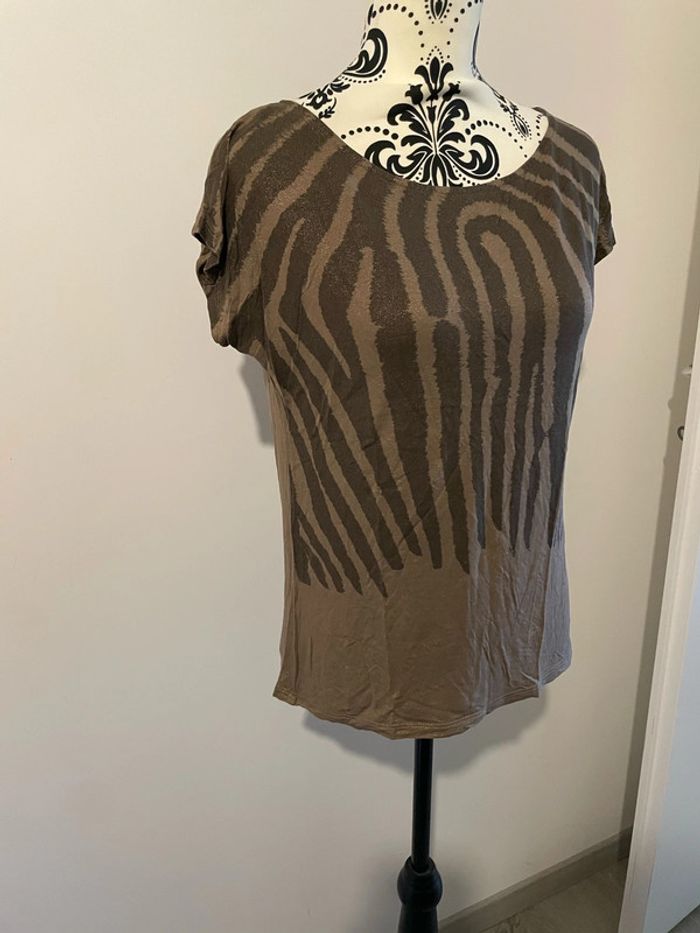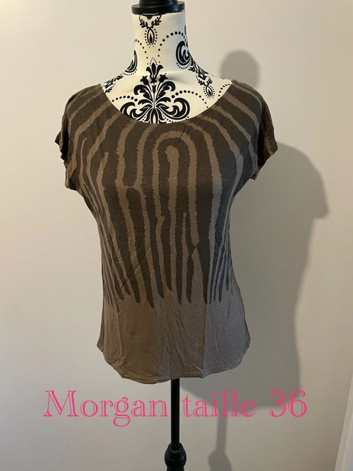 Bonjour je vends mon T-shirt à manches courtes marron doré motifs zébré Morgan taille 36 Il est en très bon état #tiatia_femme_taille36