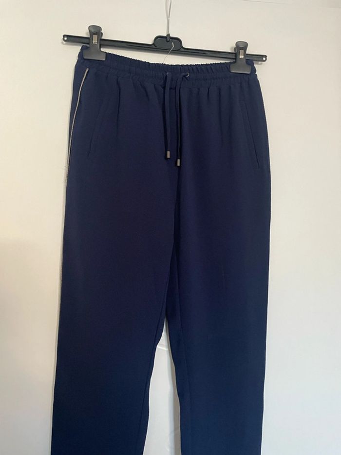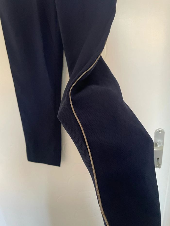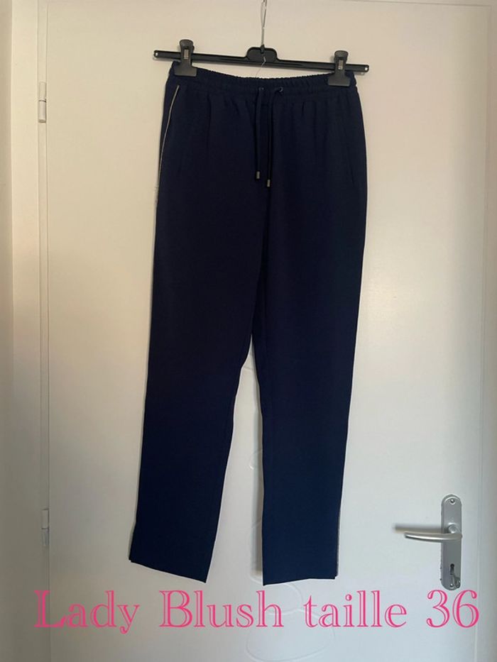 Pantalon jogging taille élastique confortable bleu marine rayure doré neuf Lady Blush taille 36