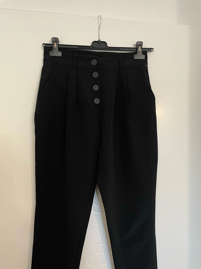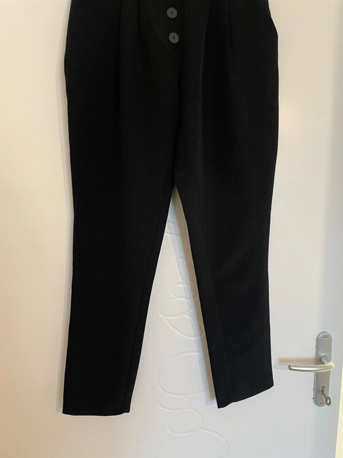 Pantalon court 7/8 noir taille haute coupe carotte bouton devant neuf La Halle taille 36 - photo numéro 3