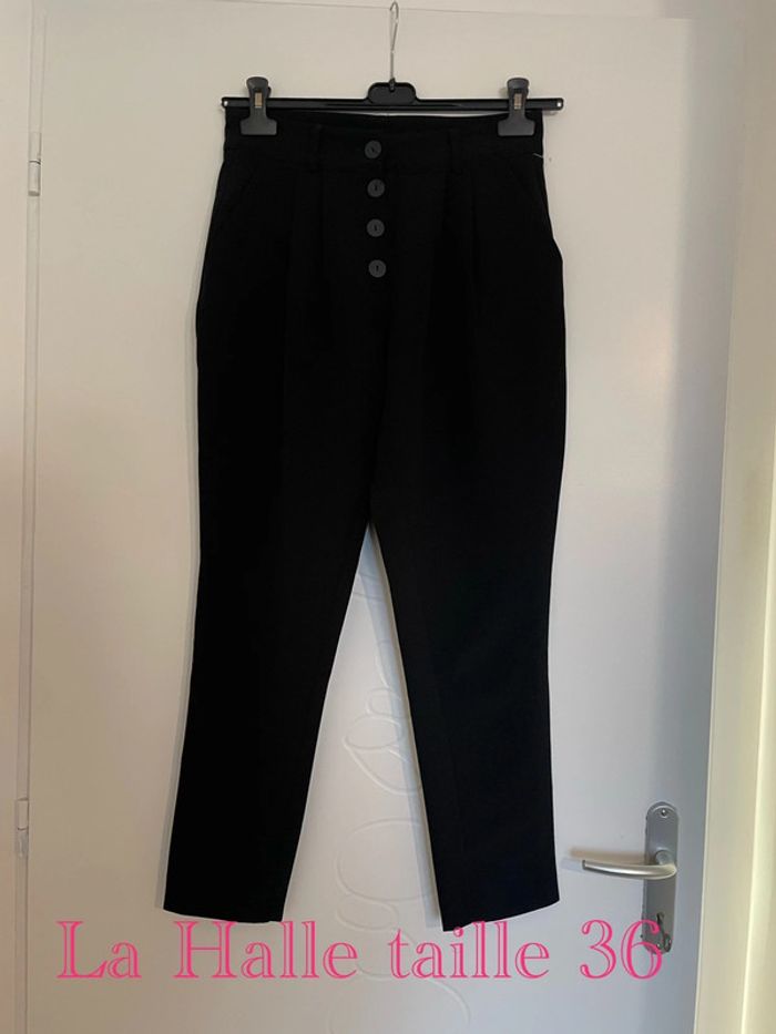 Pantalon court 7/8 noir taille haute coupe carotte bouton devant neuf La Halle taille 36 - photo numéro 2