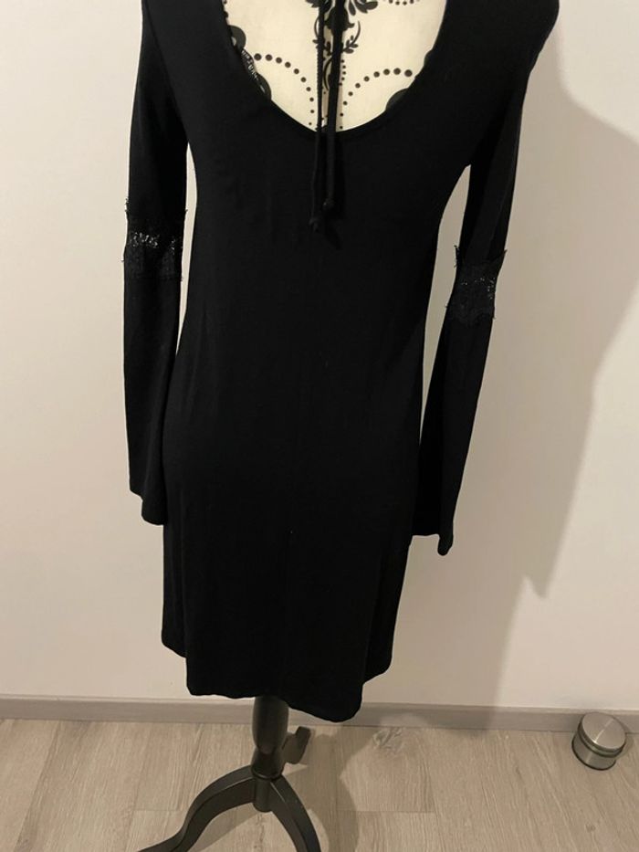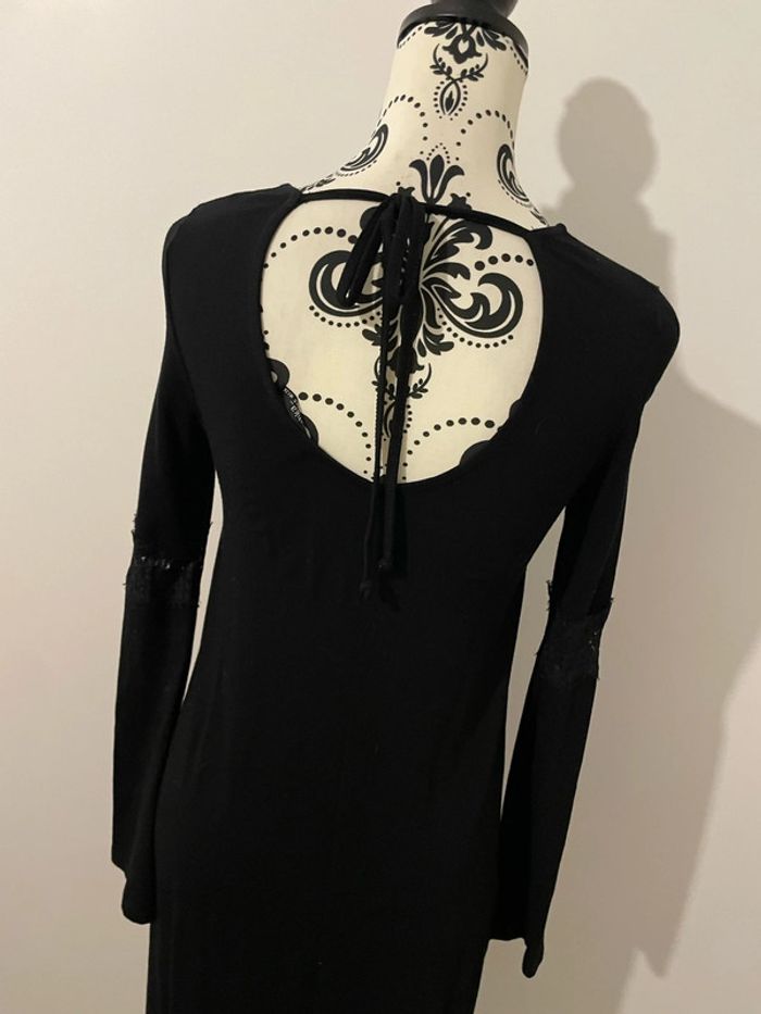 Robe fluide noir à manches longues dentelle col rond dos décolleté Bershka taille S - photo numéro 5