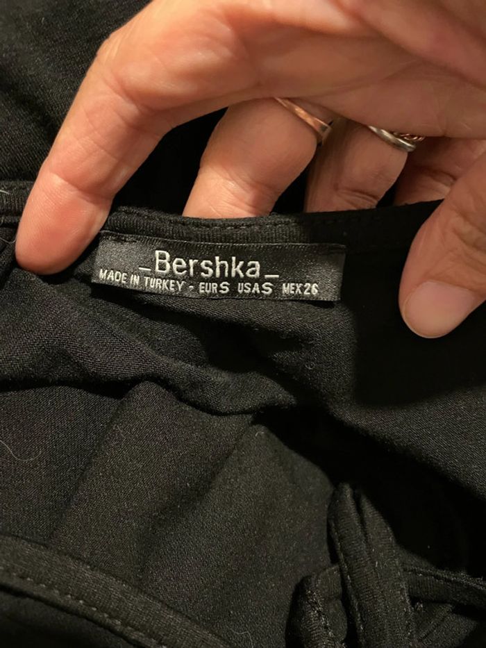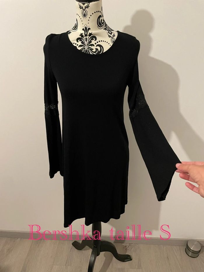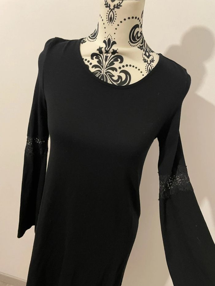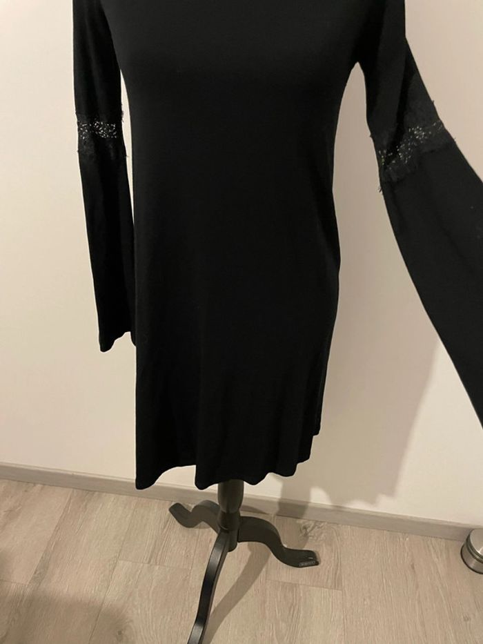 Robe fluide noir à manches longues dentelle col rond dos décolleté Bershka taille S - photo numéro 1