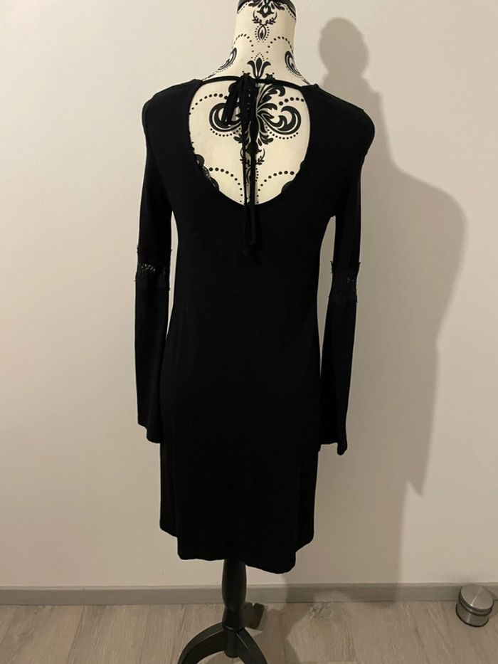 Robe fluide noir à manches longues dentelle col rond dos décolleté Bershka taille S - photo numéro 4