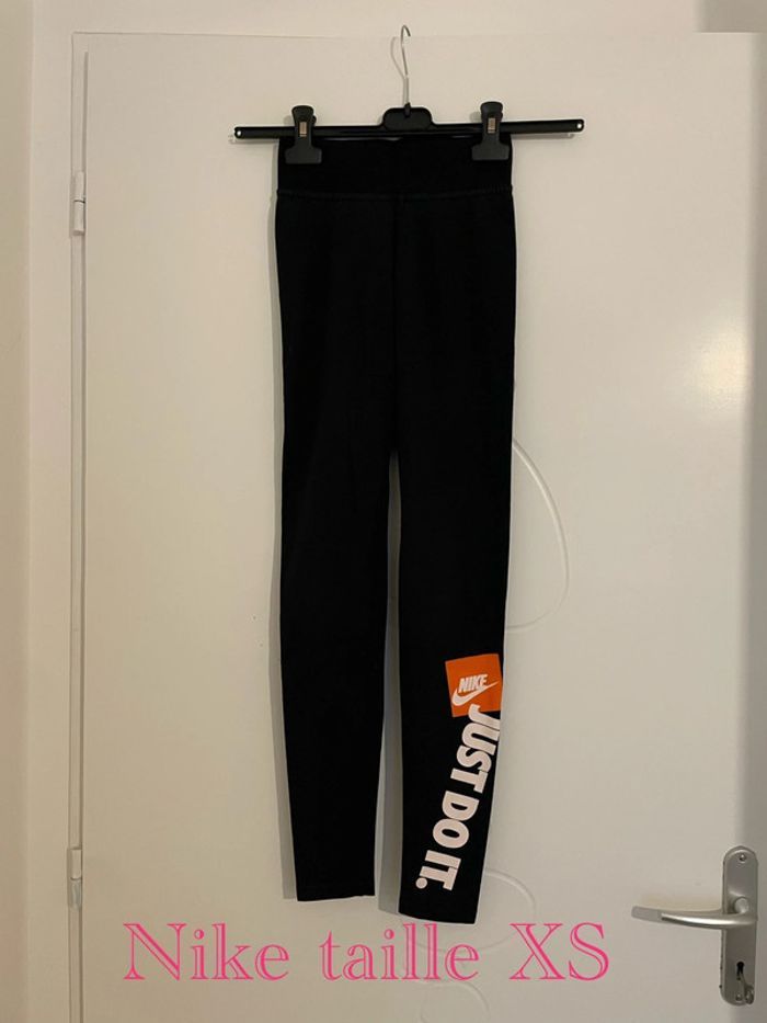 Bonjour je vends mon Legging de sport extensible noir à motifs rouge et blanc taille haute élastique Nike Just do it taille XS Il est en très bon état #tiatia_femme_taille34
