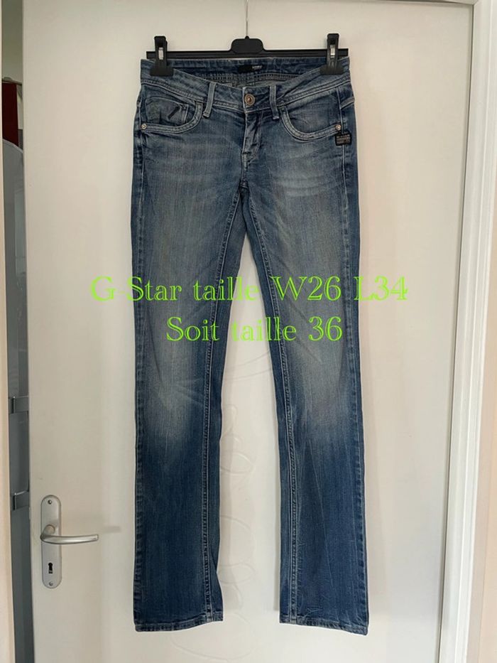 Jean bleu extensible taille basse coupe droit G-Star taille W26 L34 soit taille 36 - photo numéro 1