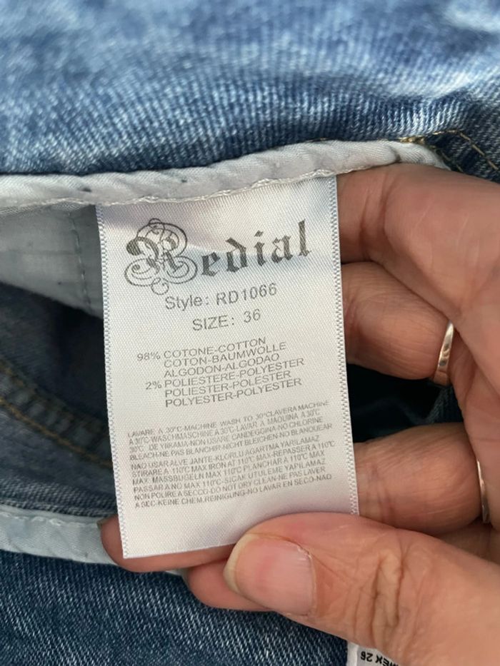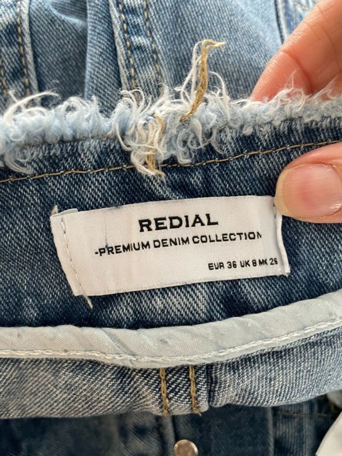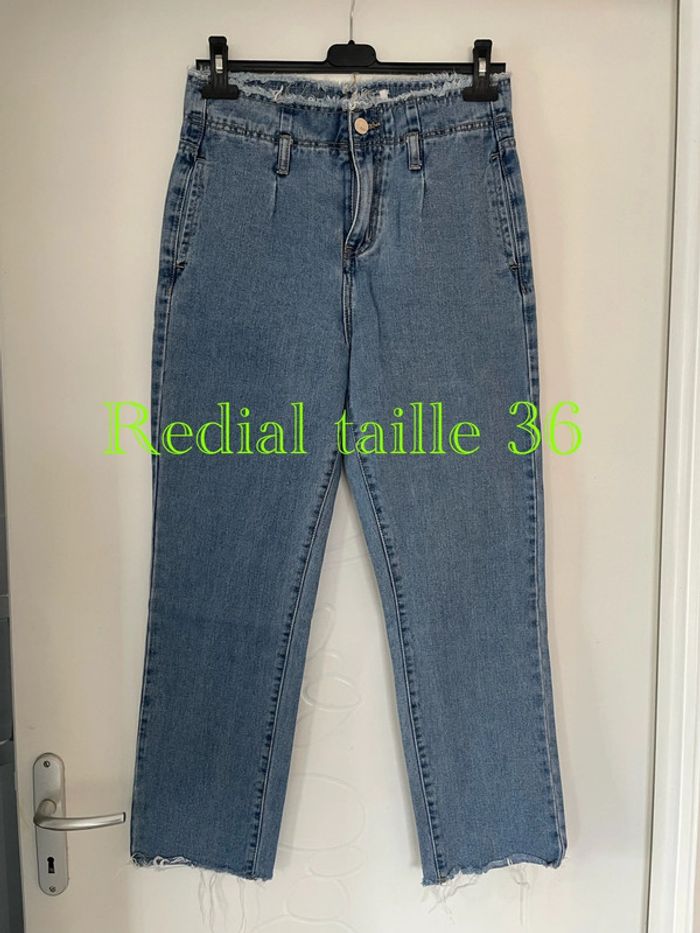 Jean court bleu taille haute coupe mom jambe large bas et haut frange Redial taille 36 - photo numéro 1