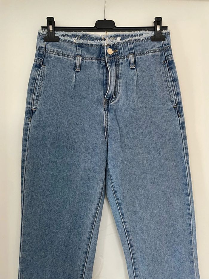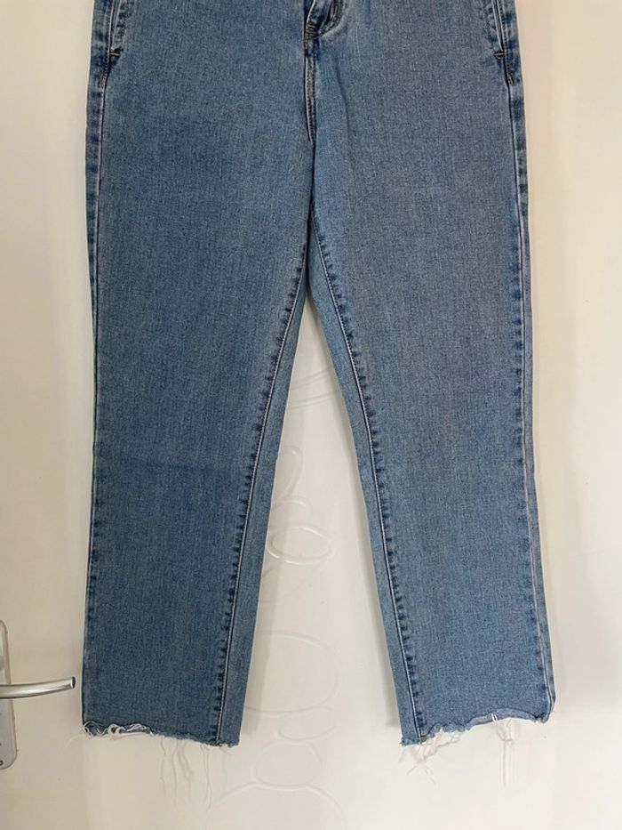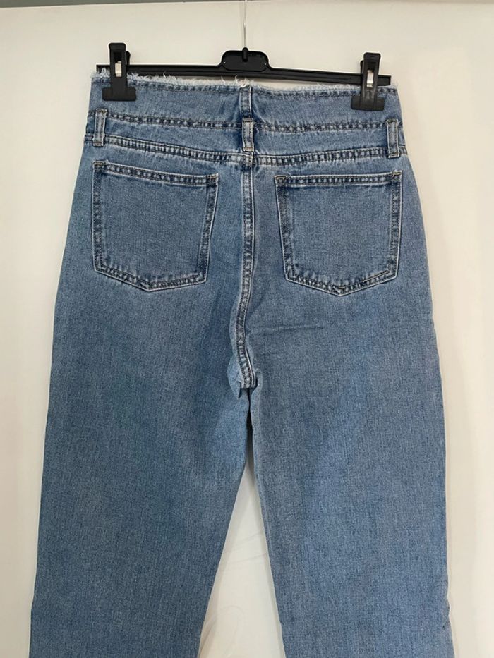 Jean court bleu taille haute coupe mom jambe large bas et haut frange Redial taille 36 - photo numéro 8