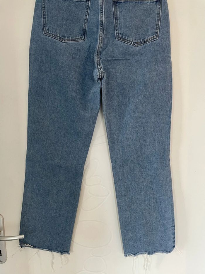 Jean court bleu taille haute coupe mom jambe large bas et haut frange Redial taille 36 - photo numéro 4