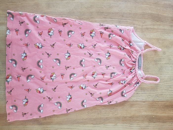 Robe style détente ou pour la nuit quand il fait bien chaud. Détails jaune brillant sur certains dessins. En excellent état. Taille 5 ans. Marque Eldys.