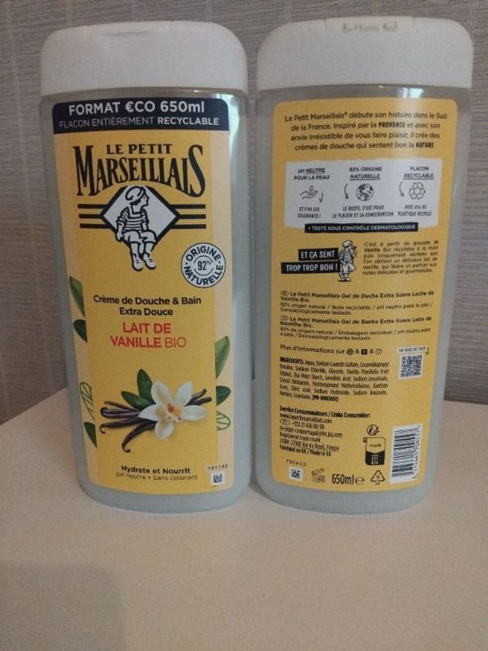 À vondre 2 crème douche LE PETIT MARSEILLAIS (Lait De Vanille BIO) 650ml×2, neuf jamais utilisé, 6€ les deux.