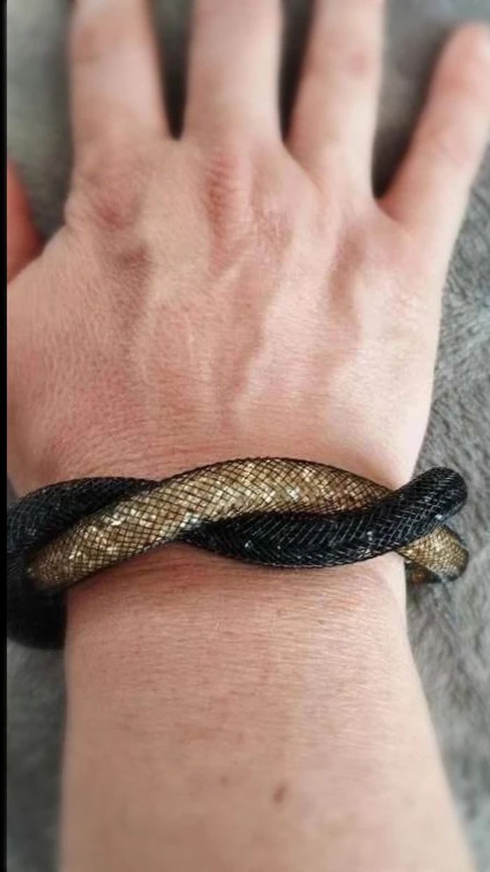 Bracelet torsadé  doré noir aimanté - Accessoire  fantaisie chic  pour femme - photo numéro 3