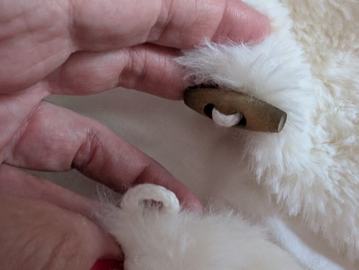 - fermeture à bouton à bascule en bois et cordon au niveau du col