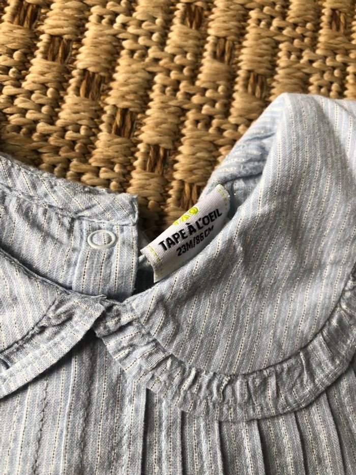 Très bon état Blouse bleu clair avec liserés argentés Très peu porté Taille 23 mois Tape à l’œil