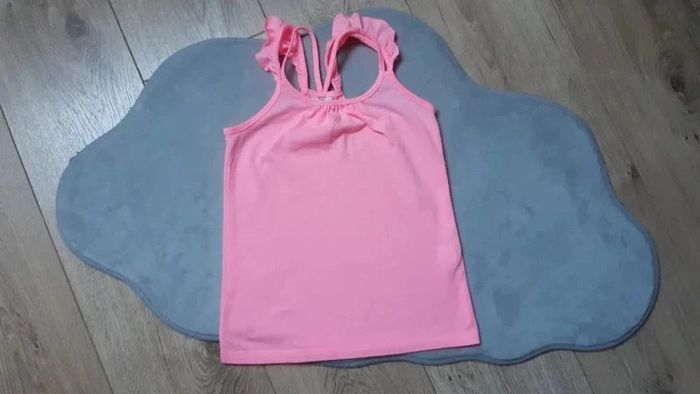 Débardeur tape à l'oeil rose fluo 6 ans en très bon état - photo numéro 1