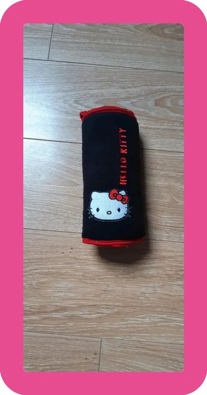 PRIX DE VENTE FERME MERCI Coussin / protection de ceinture de sécurité pour voiture Muni d'un scratch, se met et de retire très facilement. Ideal lors de longs trajets en voiture. L'enfant peut poser sa tête pour se reposer. (Bonne épaisseur, belle alternative à l'oreiller) Noir motif hello kitty En parfait état