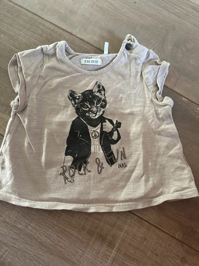 T shirt ikks chat Taille 12 mois avec bouton pression sur l’épaule