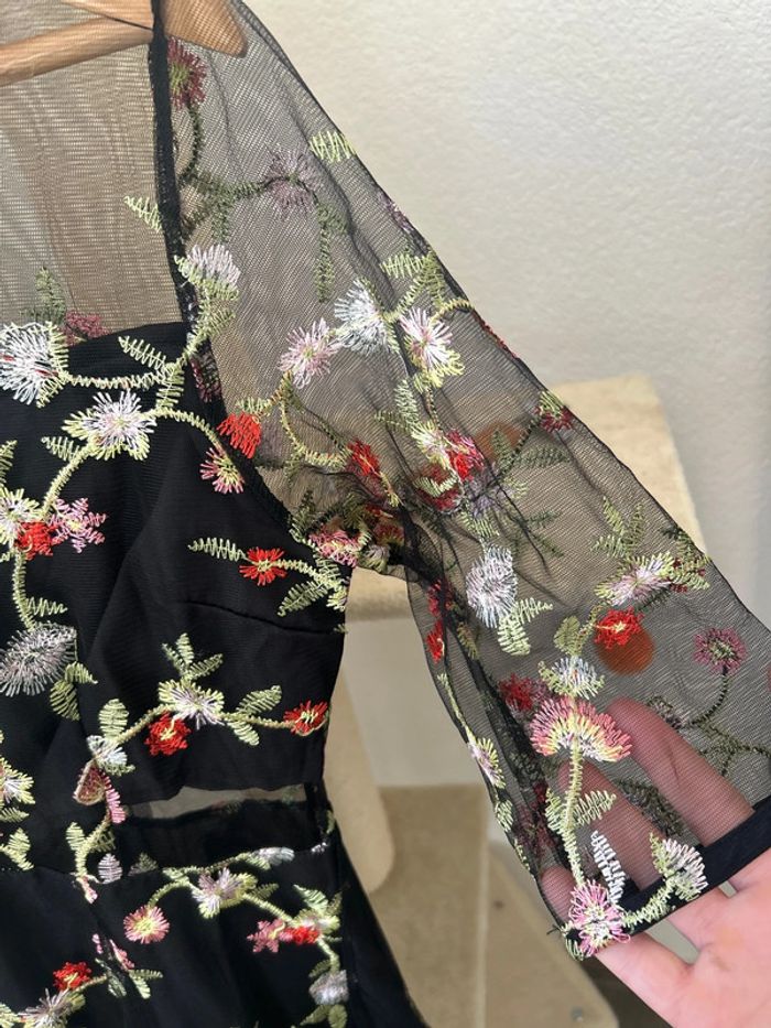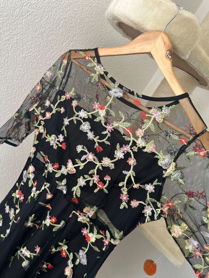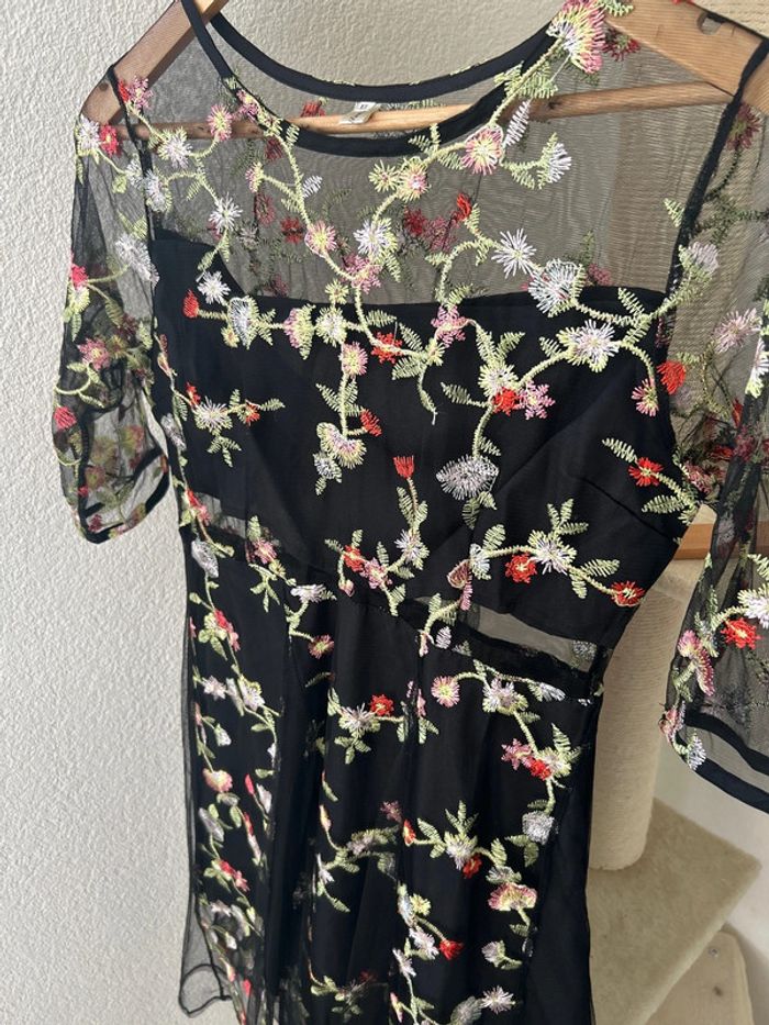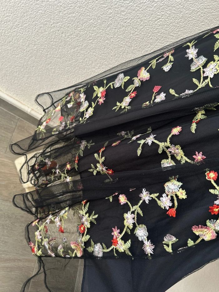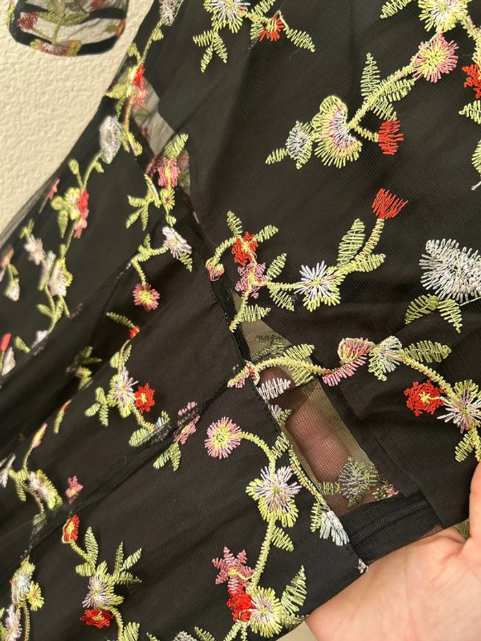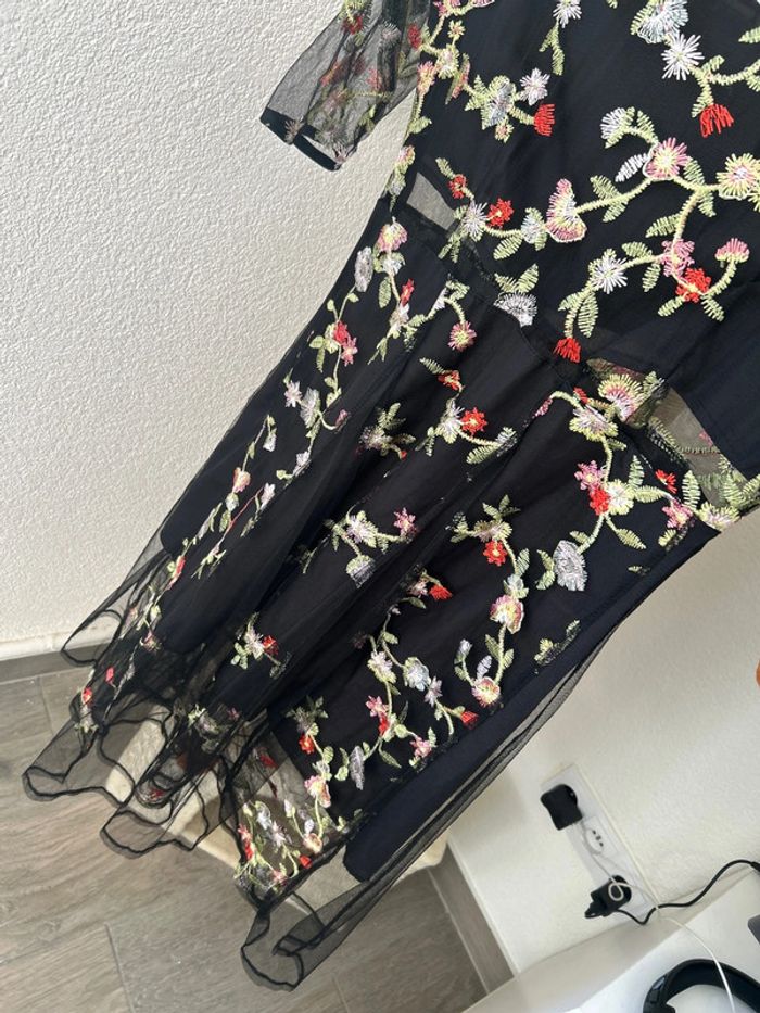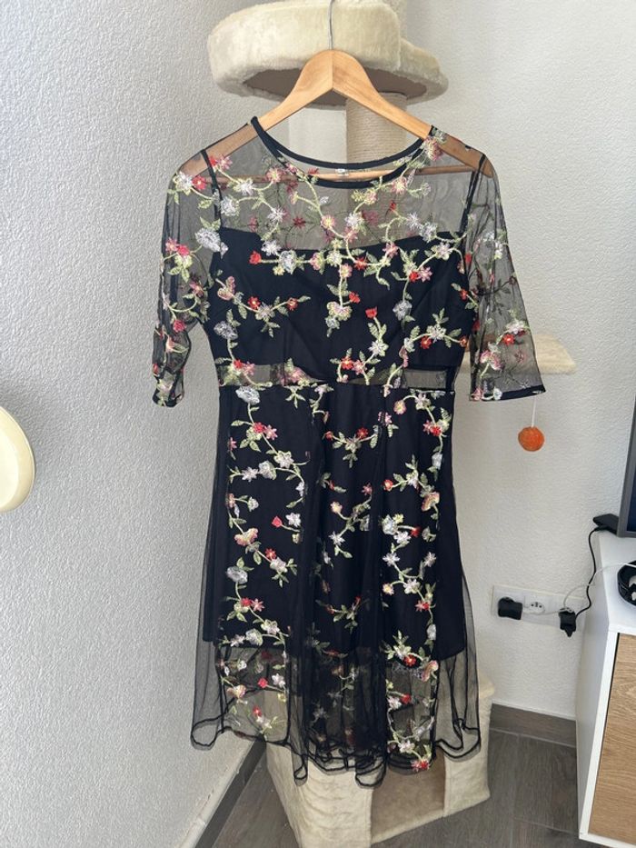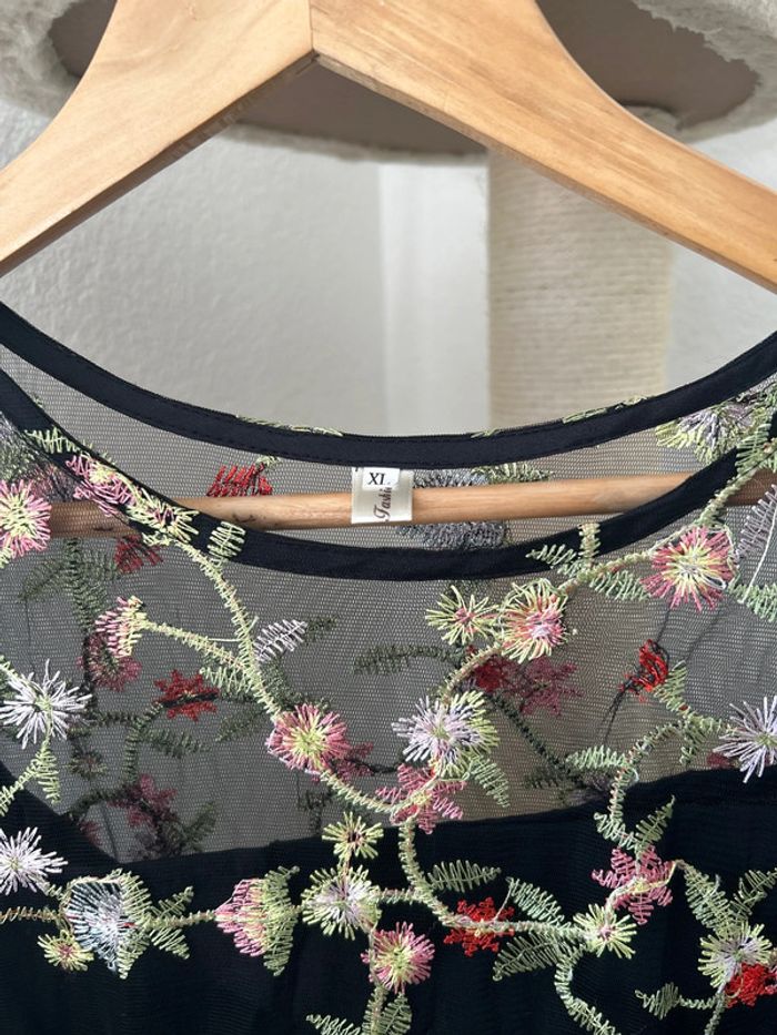Jolie robe fleurie noir avec transparente Taille XL Largeur aisselle à aisselle : 45 cm Longueur : 101 cm #delprincessetaillexl