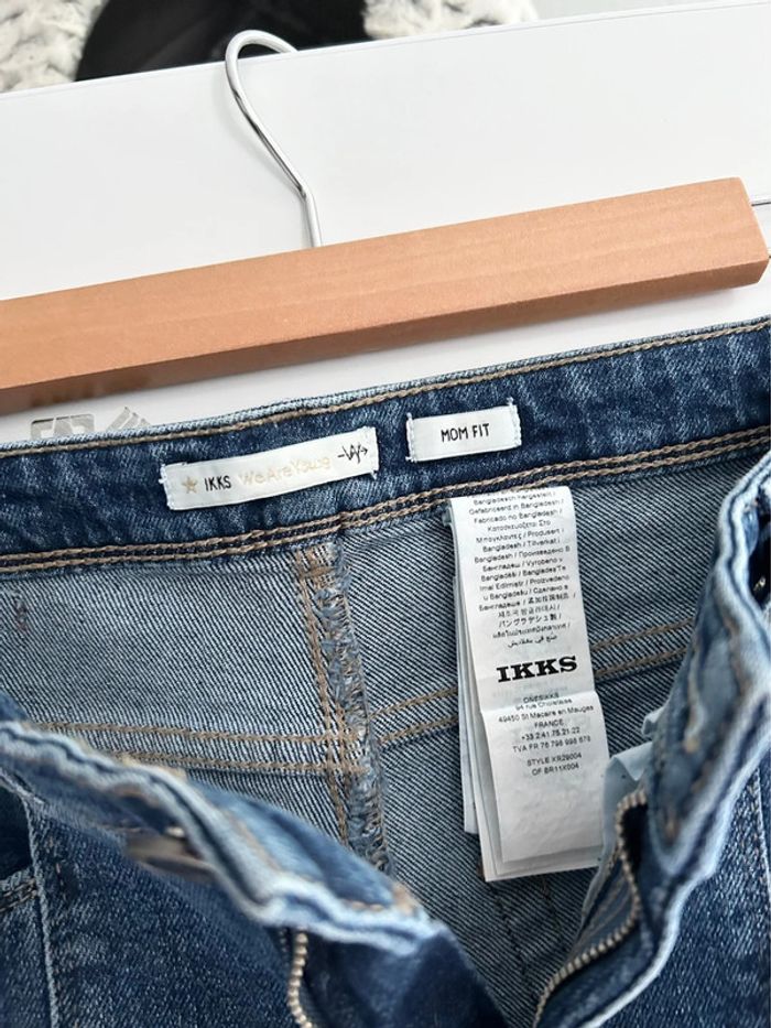 Jean neuf IKKKS vay Mom Fit en taille 26 (36) 97% de coton, 2% de polyester et 1% d’elastane. Largeur taille : 35 cm Longueur : 91 cm #delprincessetailles