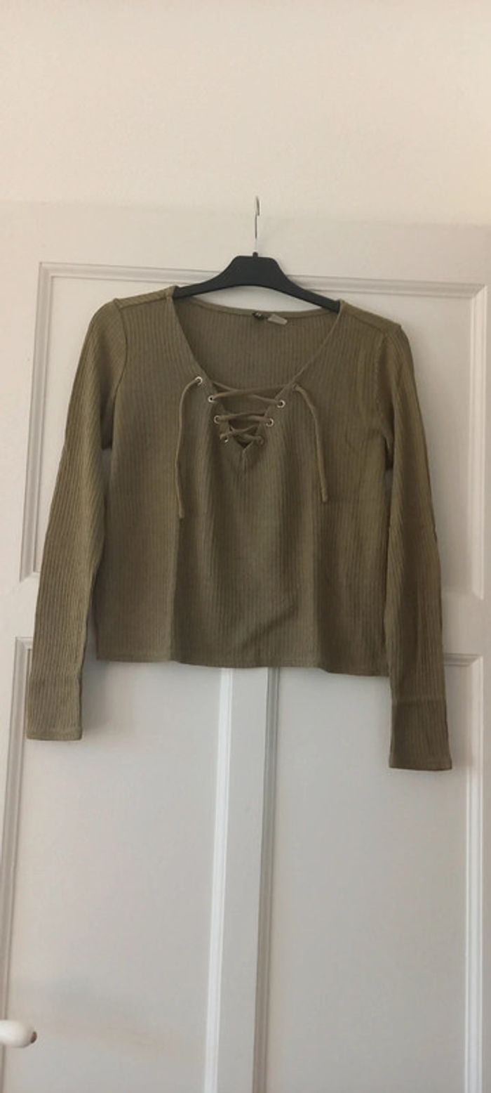 Pull kaki laçage à l'avant H&M 36 - photo numéro 1