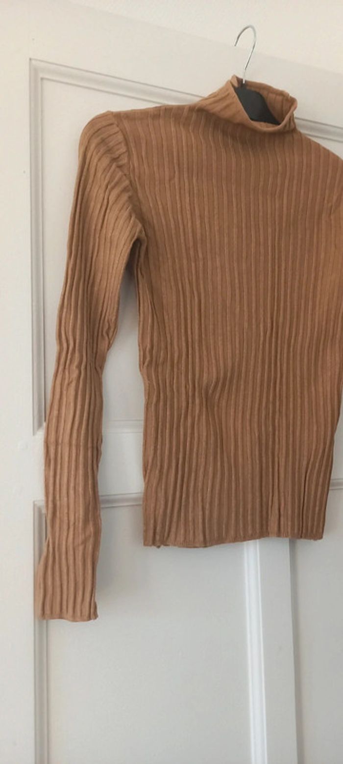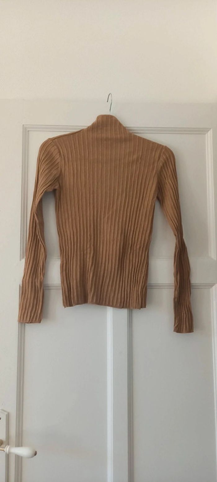 Pull col montant côtelé beige bershka 38 - photo numéro 5