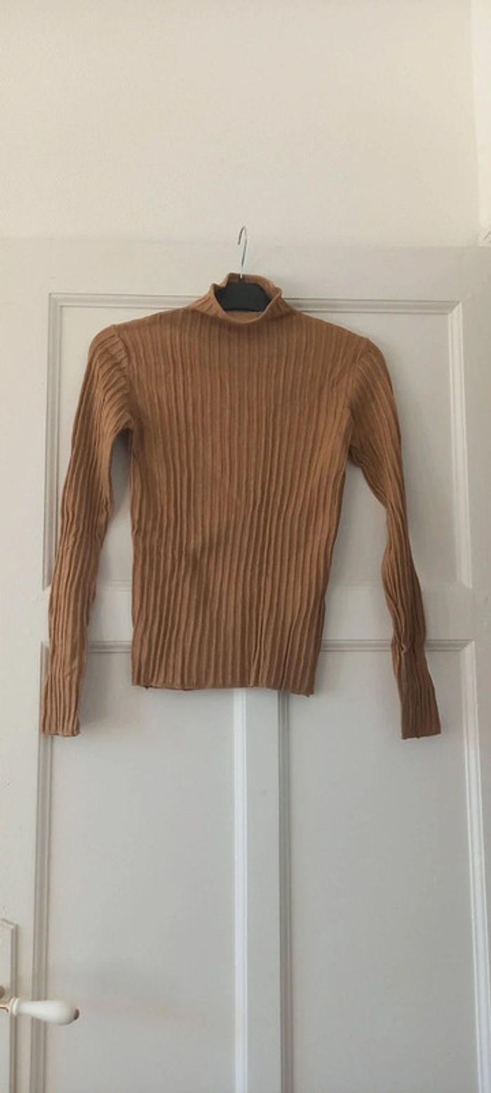 Pull col montant côtelé beige bershka 38 - photo numéro 1