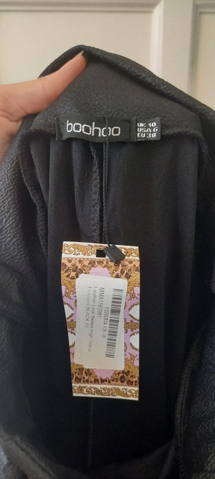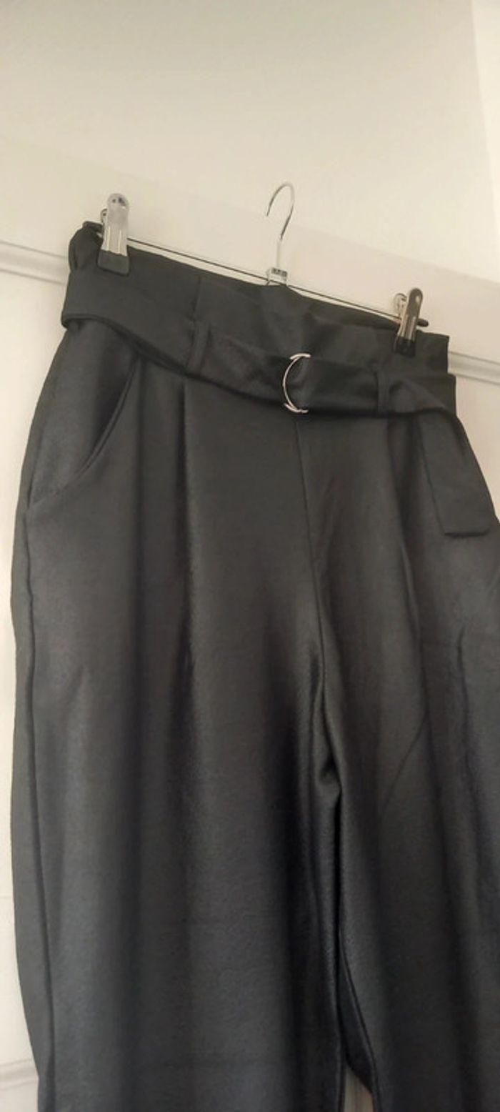 Pantalon large noir boohoo avec ceinture 38 effet similicuir très fin - photo numéro 3