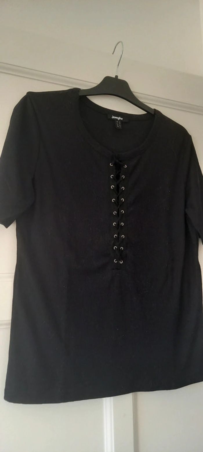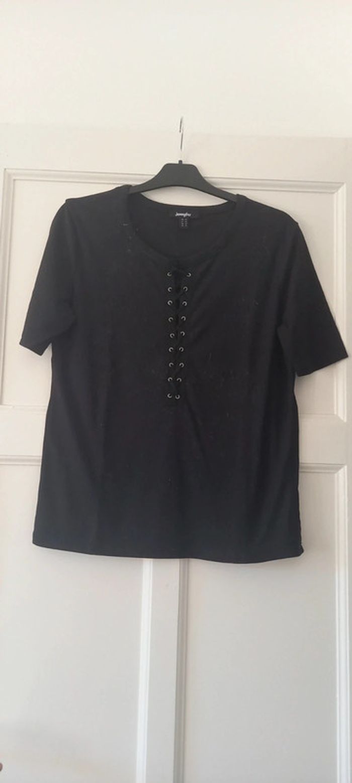T-shirt noir côtelé jennyfer 38 avec laçage à l'avant - photo numéro 1