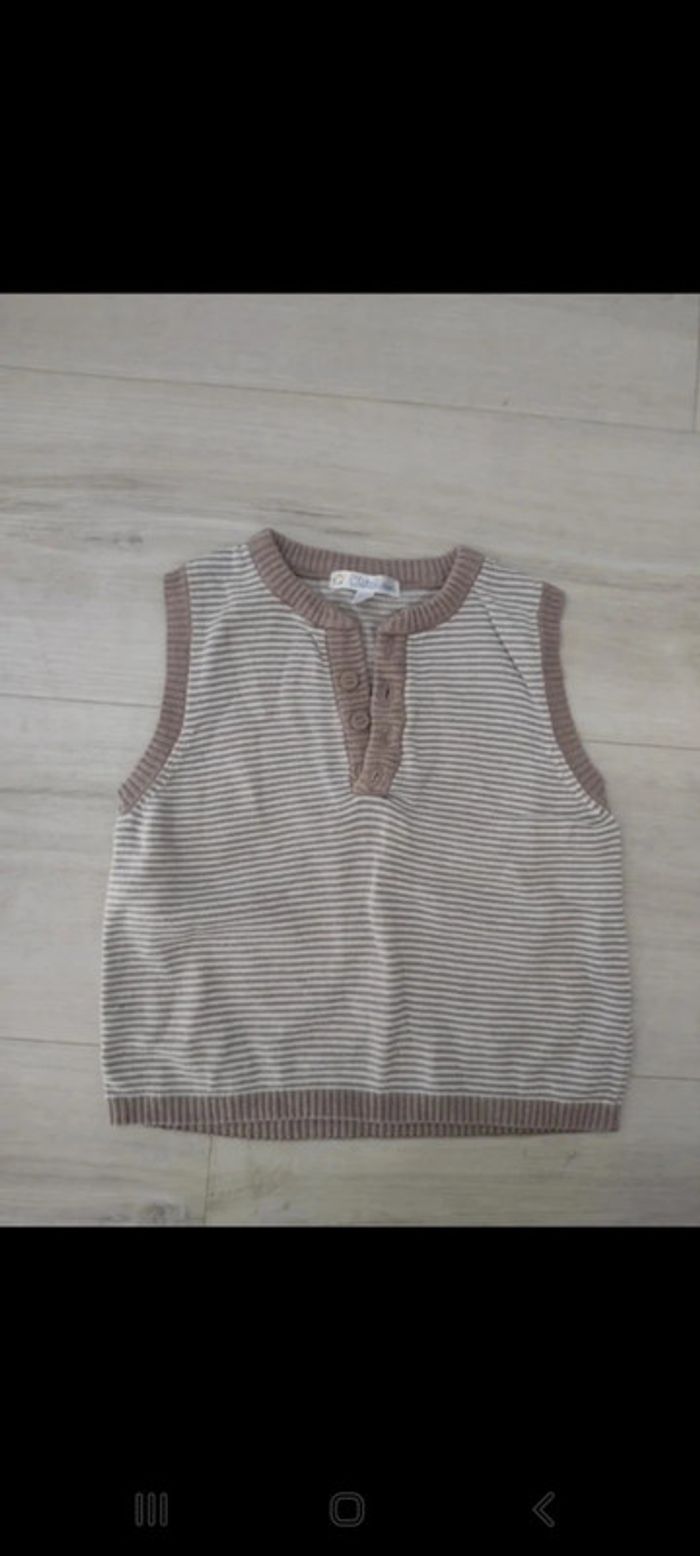 Débardeur en laine rayé marron et blanc Kitchoun, très bon état Taille 18 mois #18moisgarçon_marionrck91