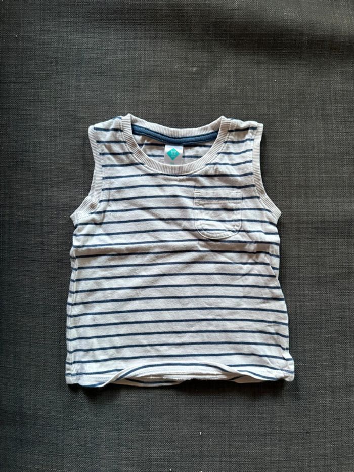 Débardeur rayé blanc et bleu marine Tex, très bon état Taille 9 mois #9moisgarçon_marionrck91
